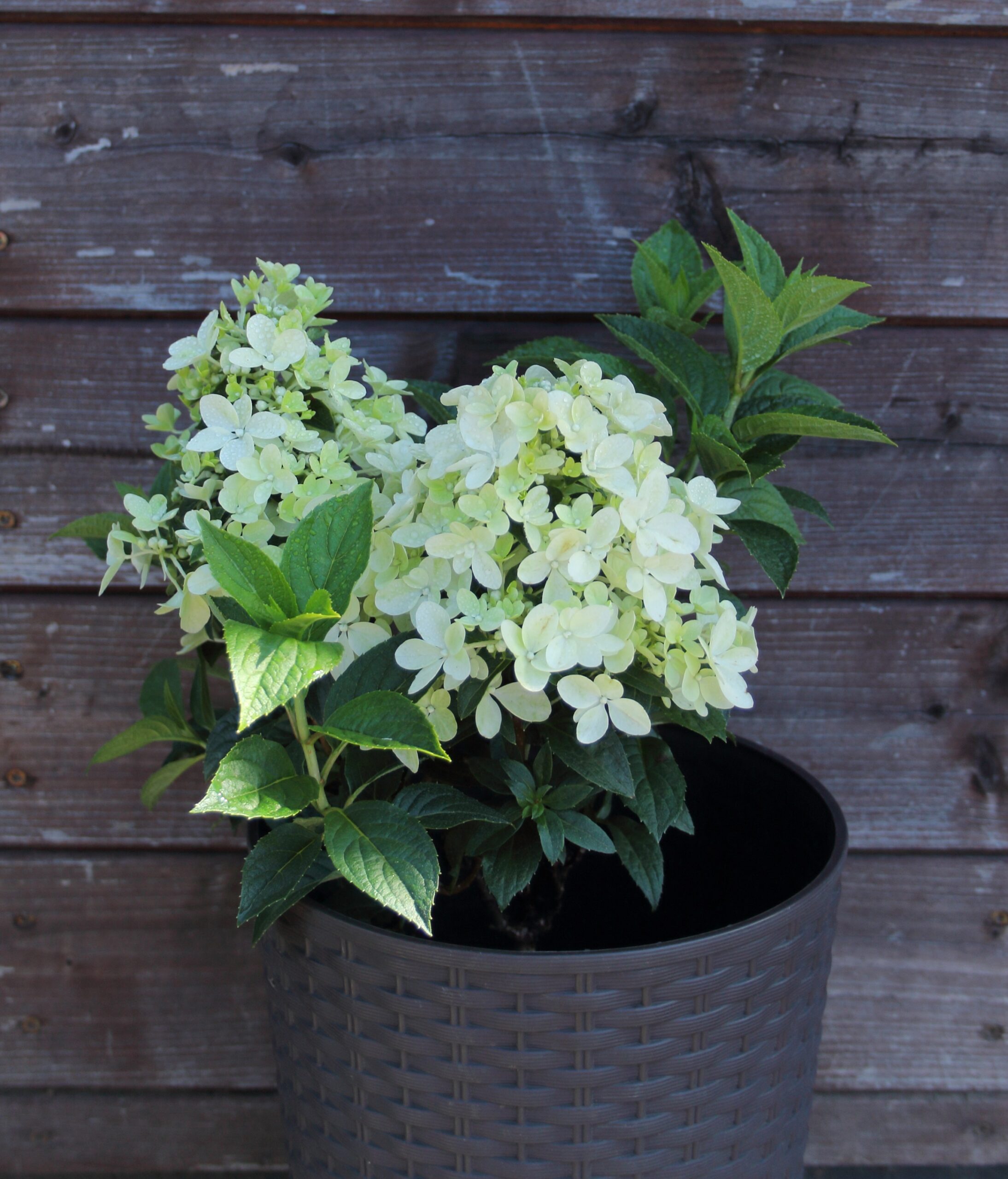 Hydrangea paniculata ‘Petite Star’ Opis produktu: Hydrangea paniculata ‘Petite Star’ to urocza odmiana hortensji o kompaktowym wzroście, idealna do małych ogrodów, donic na balkonach i tarasach. Dzięki swoim szczególnym cechom, ‘Petite Star’ stanowi elegancki i przyciągający uwagę element aranżacji zieleni. Charakterystyka: Wielkość: Roślina niska i zwarta, osiąga zazwyczaj około 50-70 cm wysokości, co czyni ją idealną do mniejszych przestrzeni. Kwiaty: Pęczki kwiatostanów są duże, stożkowate, zdominowane przez biało-różowe kwiaty, które z wiekiem przybierają odcienie różu i czerwieni. Kwiaty pojawiają się od czerwca do sierpnia. Liście: Zielone, o błyszczącej powierzchni, stanowią piękne tło dla efektownych kwiatów. Wymagania: Preferuje stanowiska słoneczne do półcienistych, dobrze przepuszczalne, lekko wilgotne gleby. Odporna na mróz, łatwa w uprawie. Zastosowanie: Doskonała do małych ogrodów, rabat, jako soliter lub w kompozycjach doniczkowych na balkonie i tarasie. Korzyści: Niska, zwarta forma ułatwia pielęgnację i aranżację. Długi okres kwitnienia od lata do wczesnej jesieni. Odporna na warunki atmosferyczne, wymagająca minimalnej pielęgnacji. Podsumowanie: Hydrangea paniculata ‘Petite Star’ to urocza, niskorosła hortensja, która doda uroku każdemu nasadzeniu. Idealna dla miłośników pięknych, efektownych roślin, które nie zajmują dużo miejsca, a jednocześnie zachwycają swoim wyglądem.